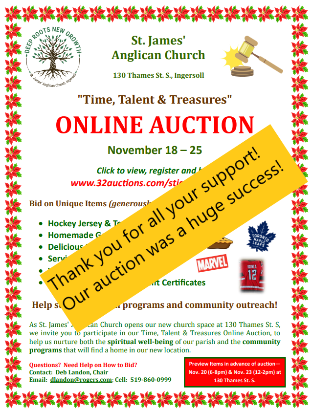 We ask you to prayerfully consider how you can support this vision. Whether through a one-time gift or a pledge over time, every tax-deductible contribution, large or small, brings us closer to our goal. Together, we can ensure that St. James’ continues to be a place of worship, education, outreach, and advocacy, serving the people of Ingersoll with love and faithfulness.