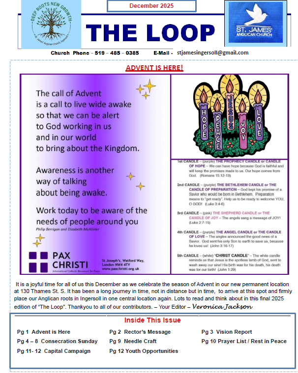Click on the front page of the latest edition of St. James' Church December 2025 newsletter to read all about our parish and its activities.